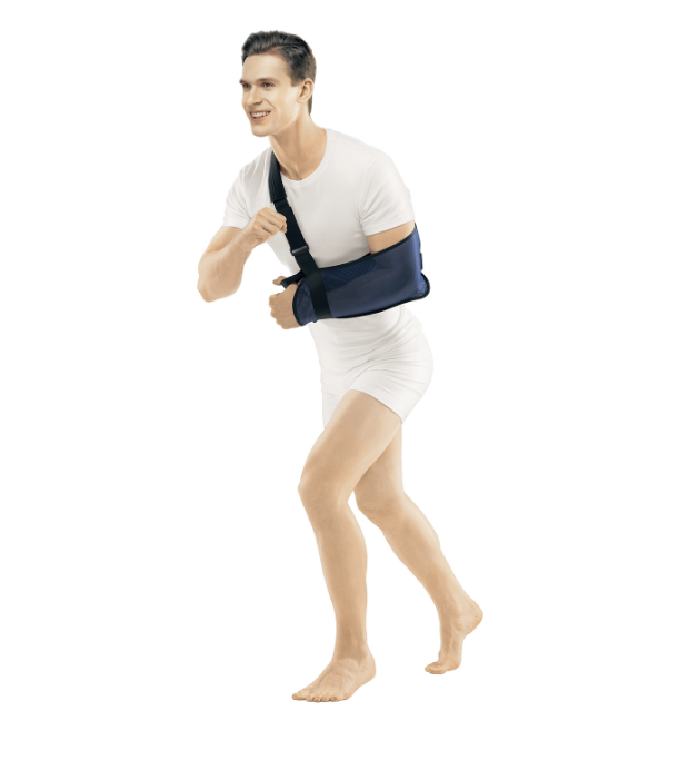 Бандаж на плечевой сустав (косыночный для поддержки верхней конечности) широко используется как самостоятельный способ иммобилизации, так и в сочетании с другими ортезами на суставы верхней конечности или традиционными гипсовыми повязками.