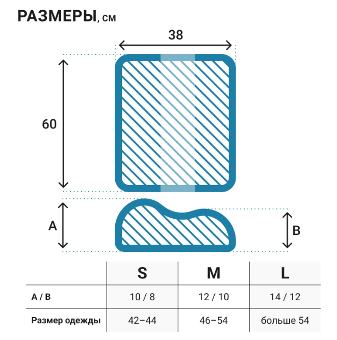 • более 54 размера – L, 38×60x(12) 14 см